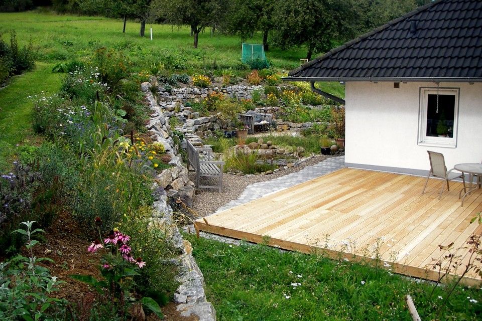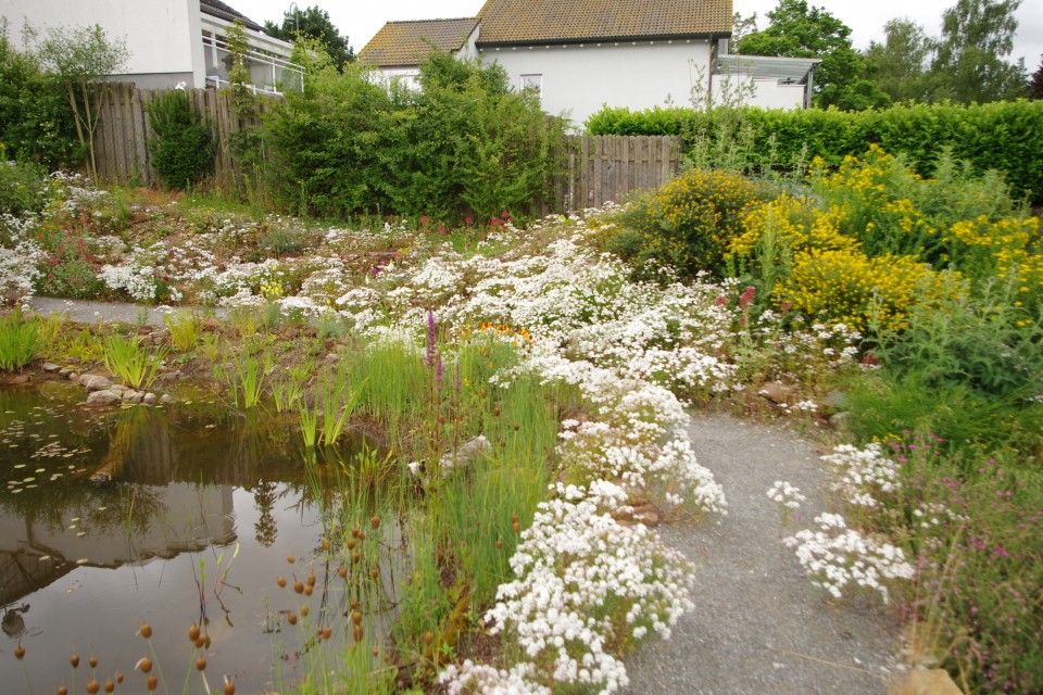 kann so ein Schmetterlingsgarten, ein essbarer Bauerngarten, ein Eidechsen- oder Amphibien-Garten oder ein „Kinder-Garten“ entstehen, wo dann auch die Rasenfläche ihre Existenzberechtigung hat.